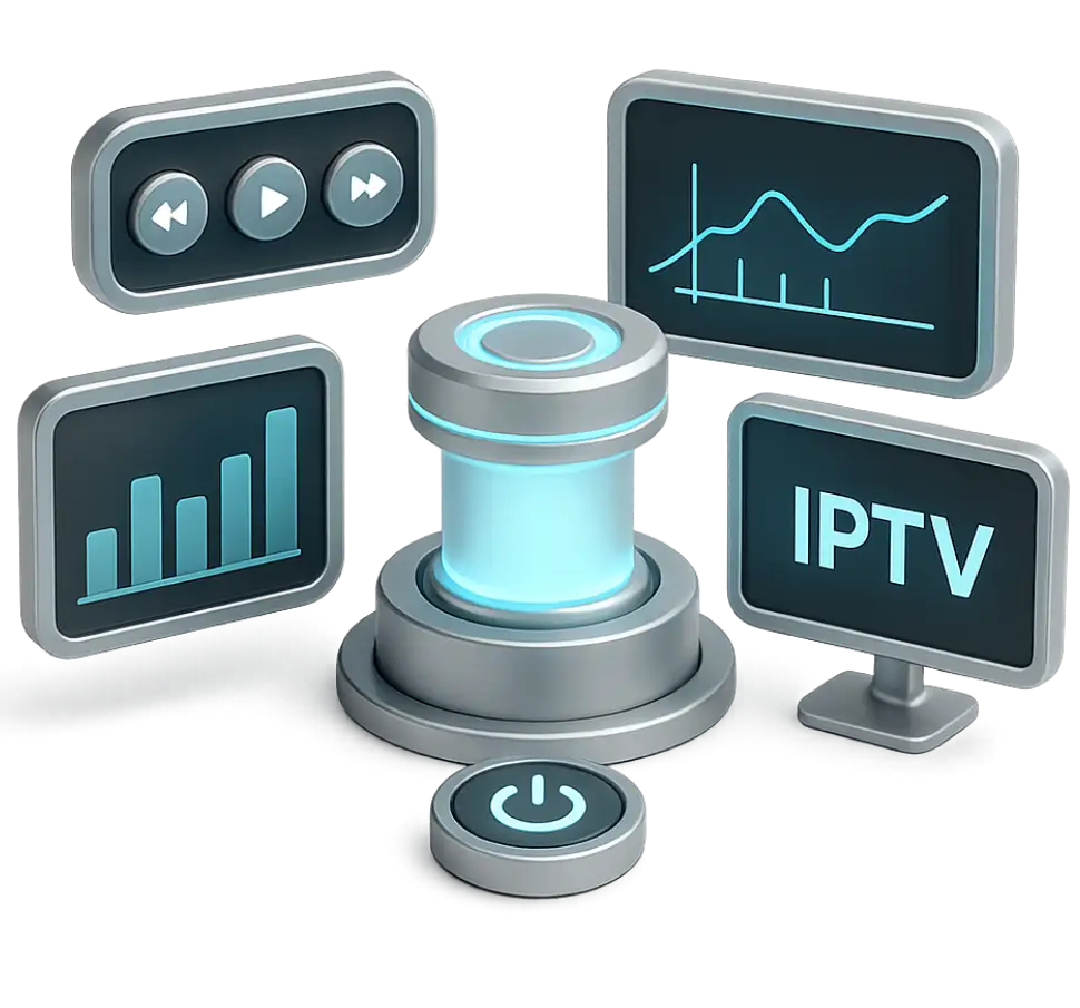• Panel IPTV : Interface d’administration pour gérer les comptes utilisateurs.